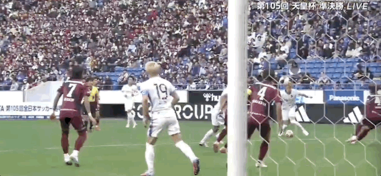 40’杰梅恩良三秒区前打门,神户守门员将球没收