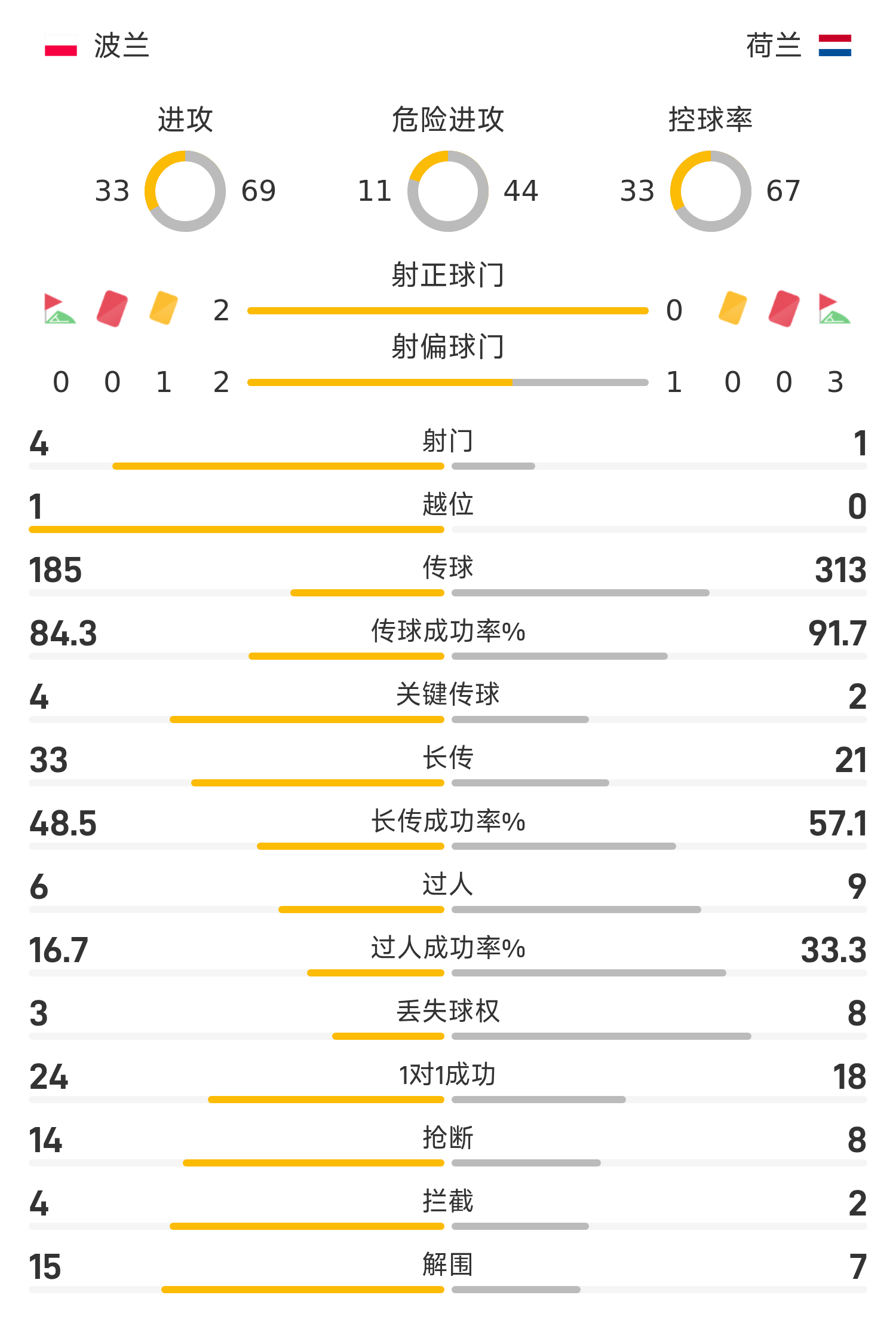 世欧预半场:卡明斯基单刀推远角破门,波兰暂1-0荷兰