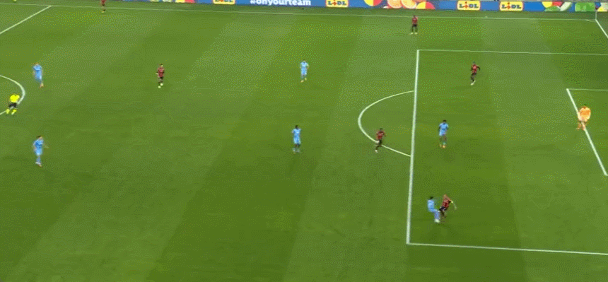 23’范霍特弧顶区域接应横传起脚抽射,阿图博卢稳稳将球抱住