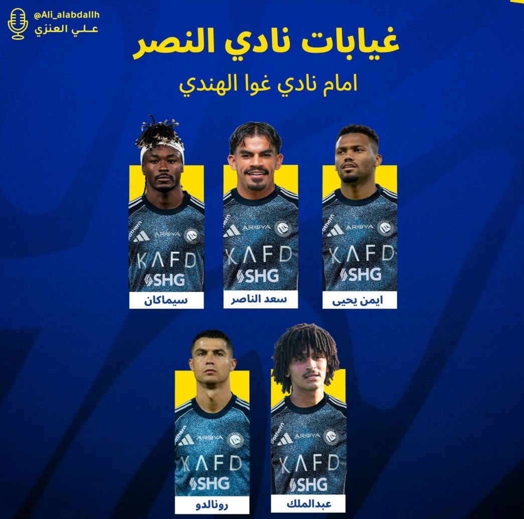 C罗本场竞赛轮休,西马坎、纳赛尔、叶海亚因伤缺席。