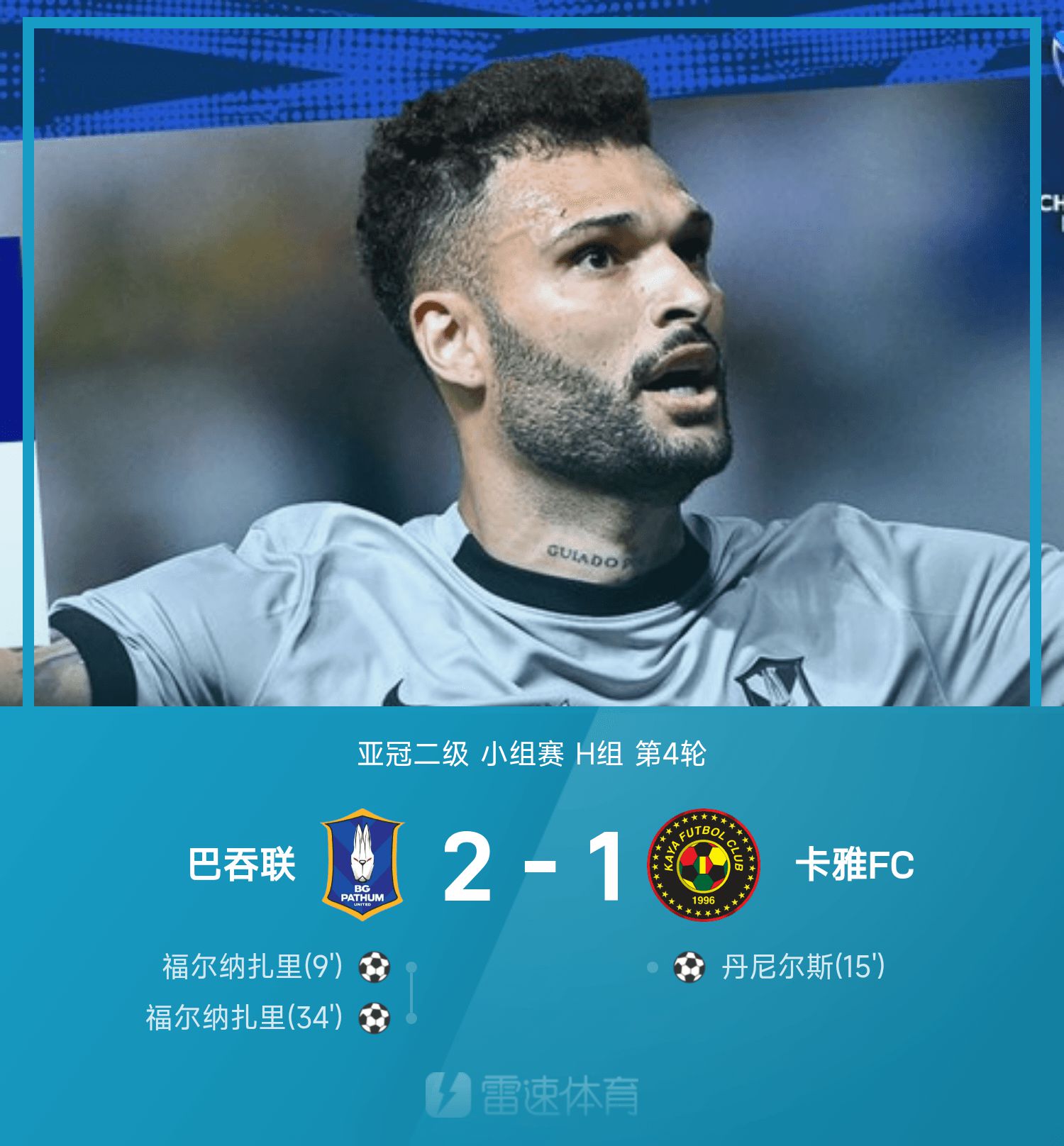 亚冠二级战报:福尔纳扎里双响,巴吞联2-1力克卡雅FC