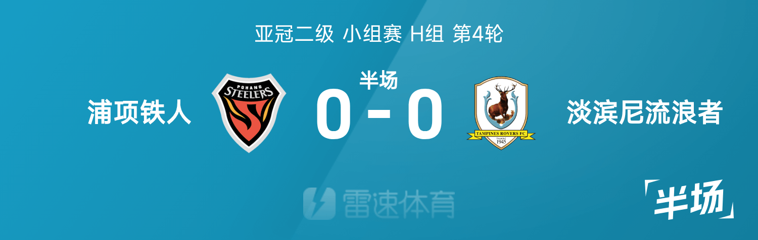 亚冠二级半场:东川续中横梁,浦项铁人0-0淡滨尼流浪者