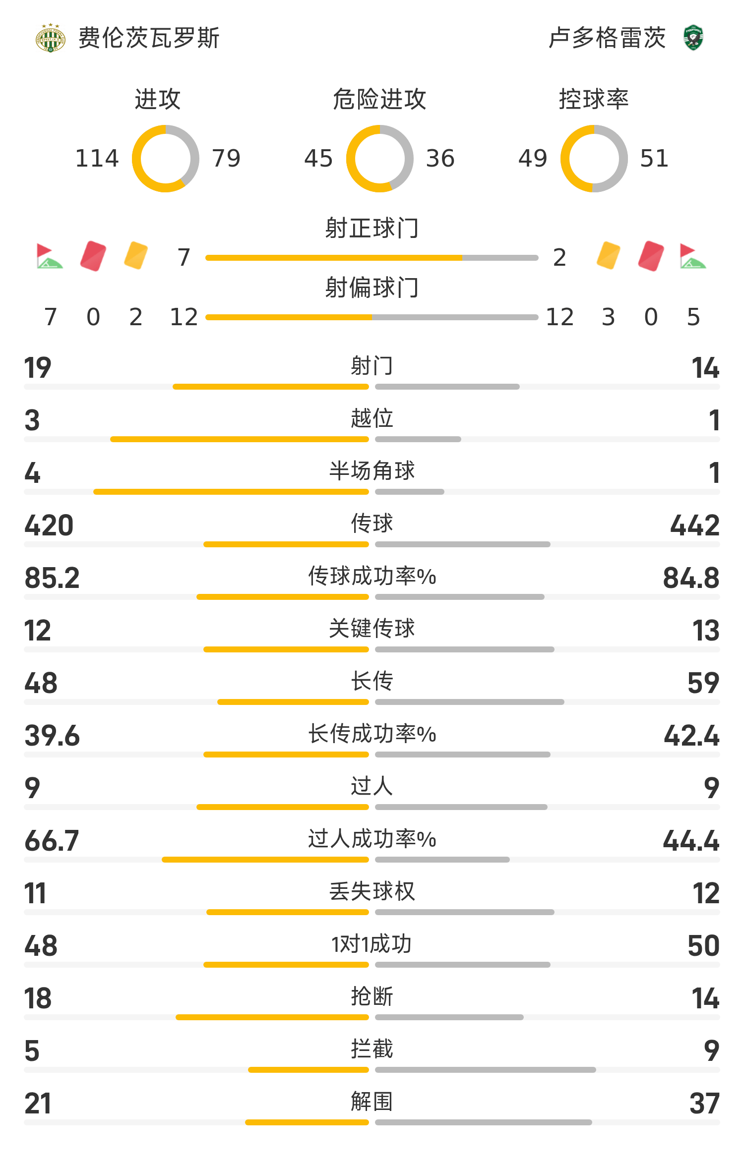 欧联战报:卡杜、约瑟夫破门,费伦茨瓦罗斯3-1卢多格雷茨
