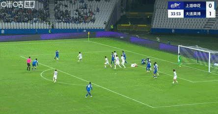 45+1’申花逃过一劫!朱鹏宇跟进射门得手,因越位在先被吹无效
