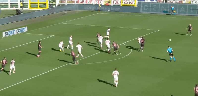 39’阿斯拉尼主罚自由球直接攻门被挡,随后莱亚利及时完成清球