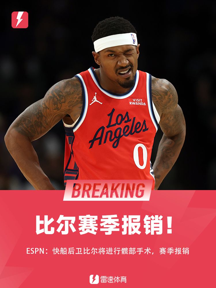6686体育平台11月13日讯 今日,据ESPN名记Shams报道,快船后卫比尔遭遇髋部骨折将进行手术,赛季报销。