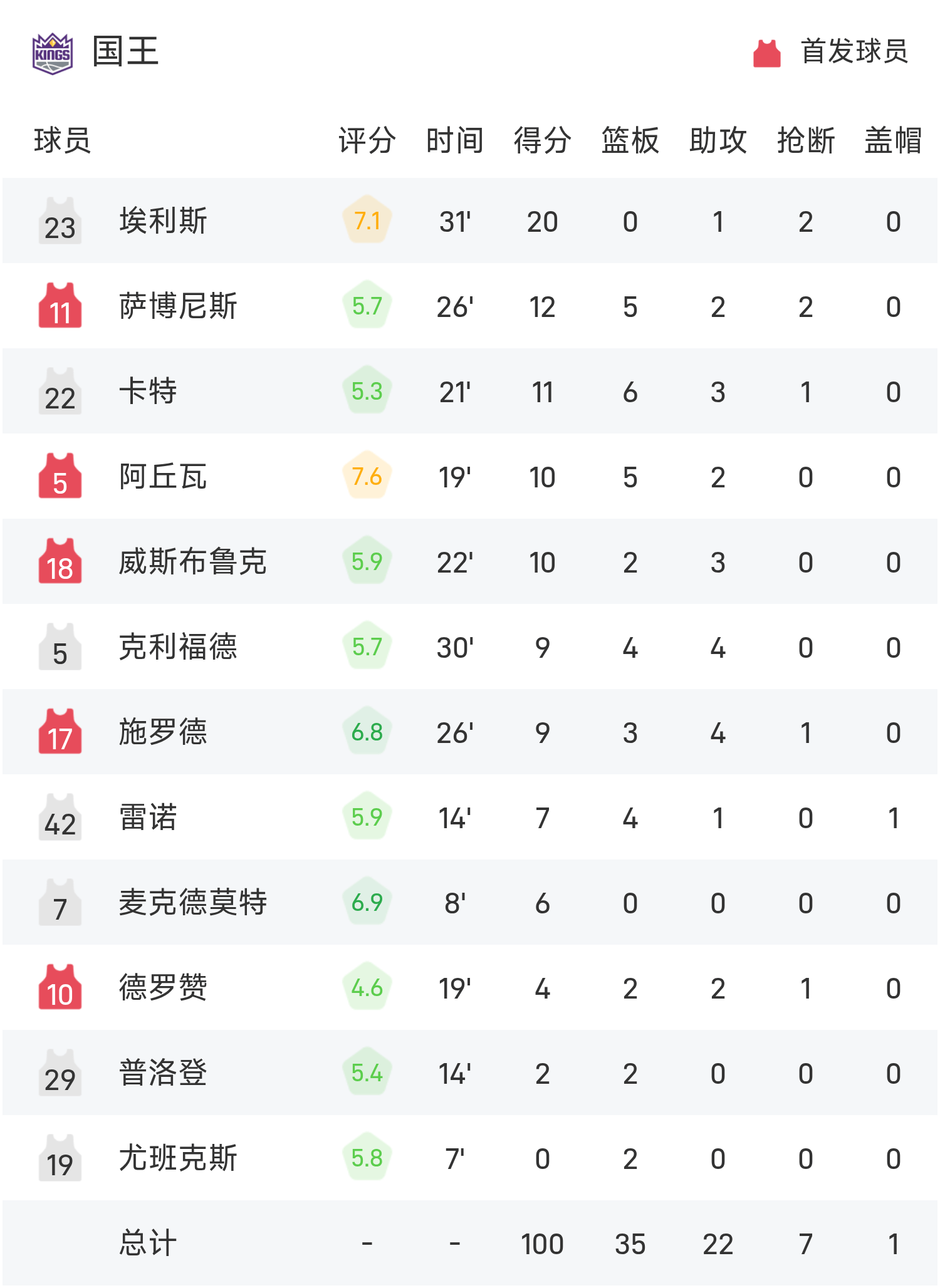 6686体育平台11月13日讯 25/26赛季NBA 常规赛,国王对阵老鹰。双方全场战罢,国王100-133不敌老鹰。约翰逊砍下全场最高的24分10板8助,率领老鹰胜利取胜。