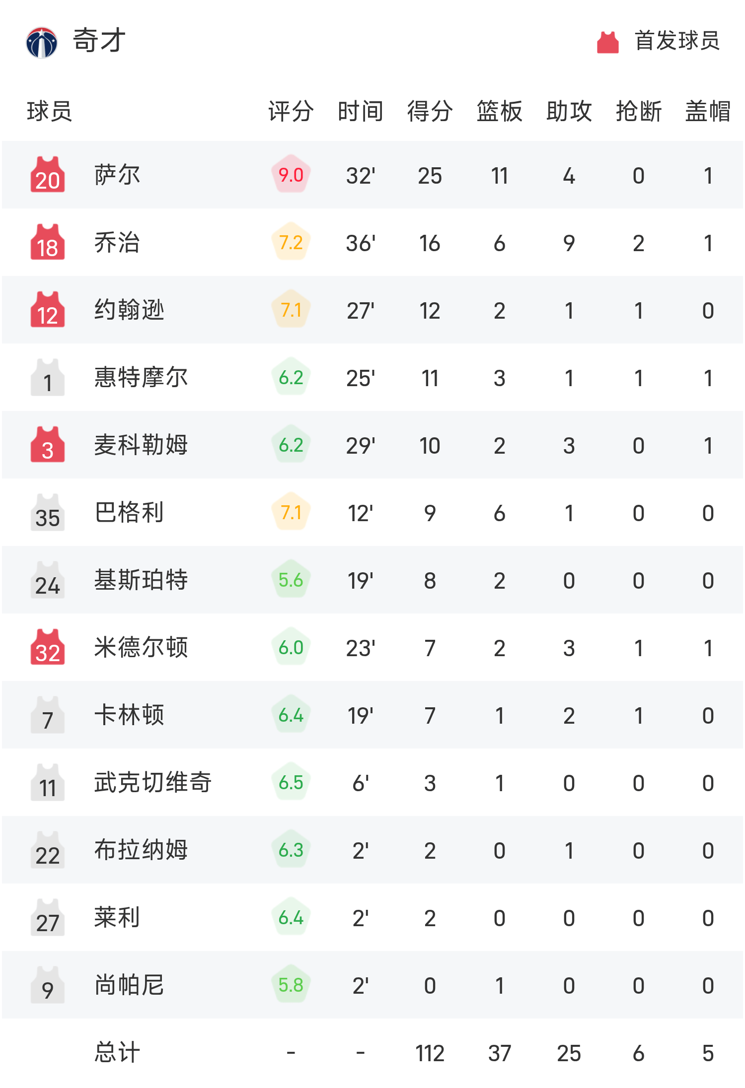 杜兰特得到23分5板4助率队取胜,萨尔空砍全场最高的25分11板4助。