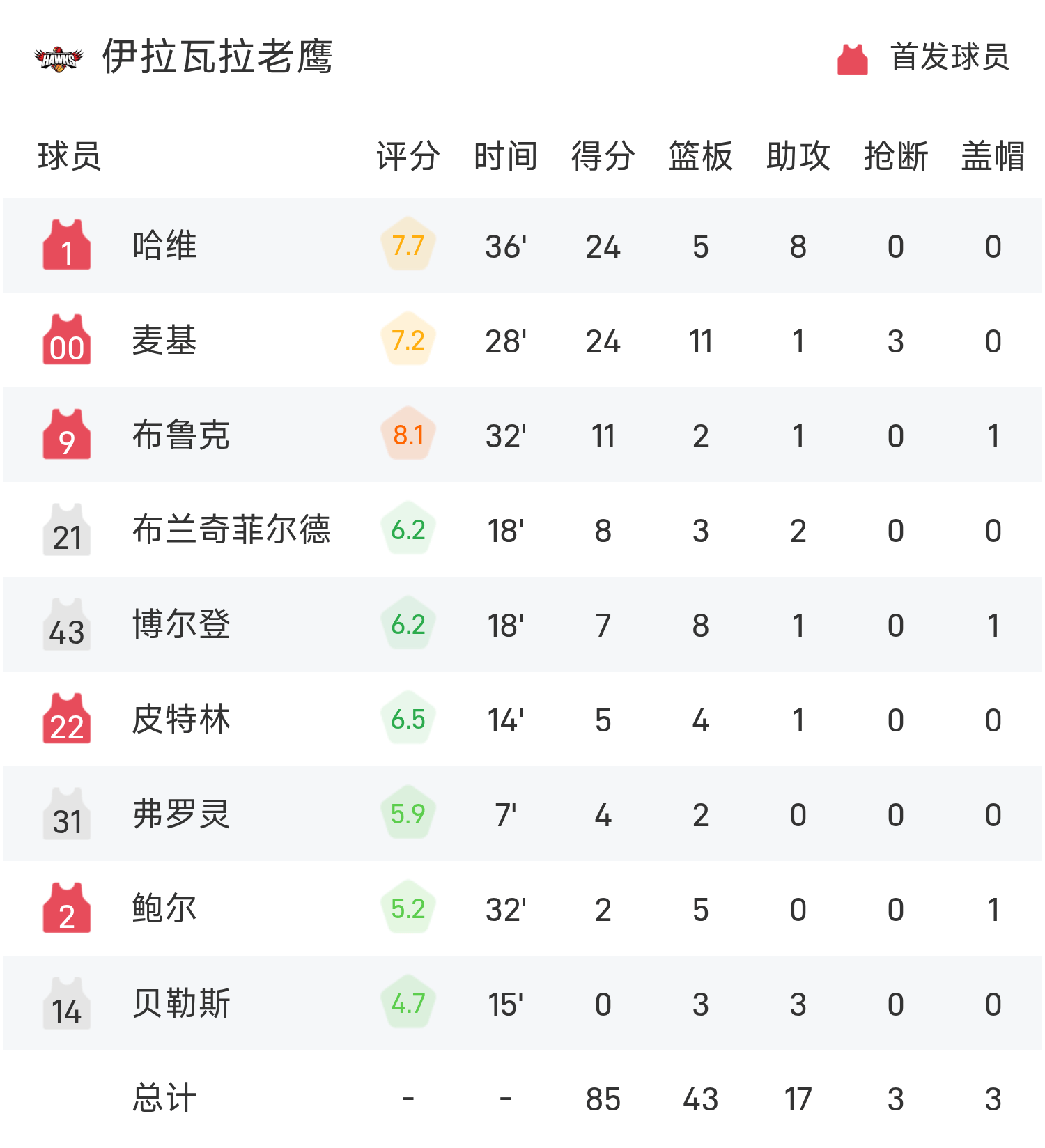 球员数据 查看更多