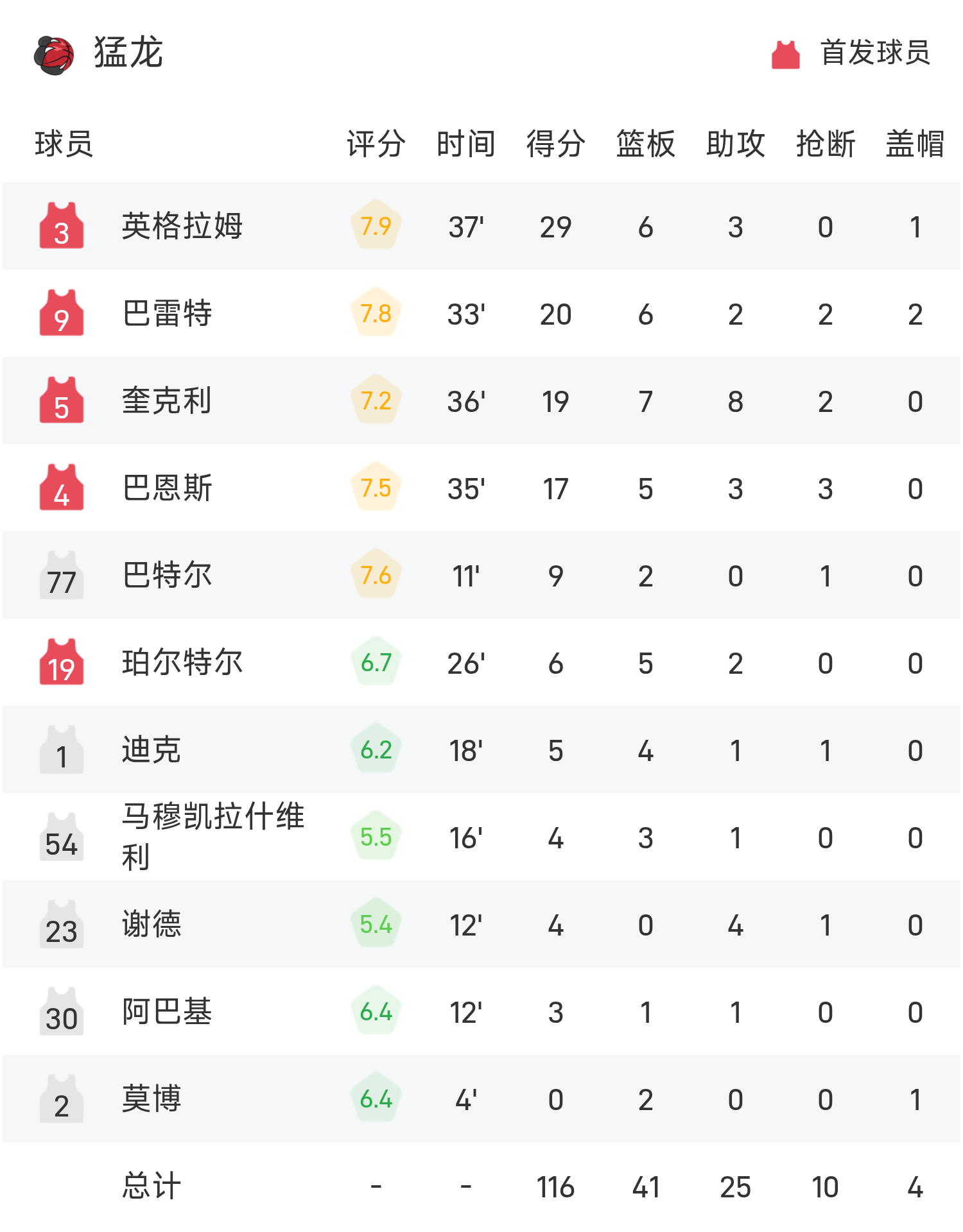 6686体育平台10月25日讯 25/26赛季NBA 常规赛,猛龙对阵雄鹿。双方全场战罢,猛龙116-122不敌雄鹿。阿德托昆博砍下全场最高的31分20板7助,率领雄鹿胜利取胜。