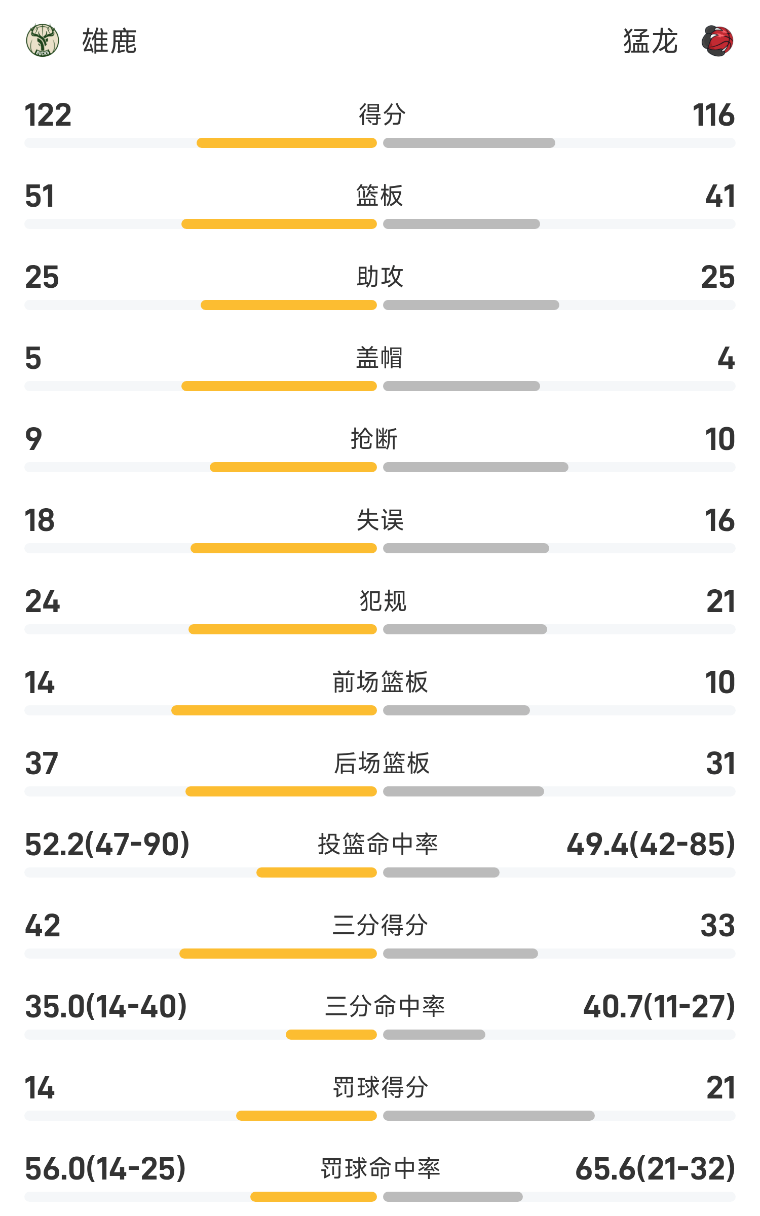 NBA战报:阿德托昆博31分20板7助,雄鹿122-116击败猛龙
